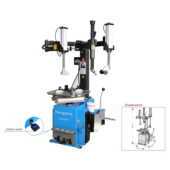 1. Left cylinder auxiliary arm: Speeds up mounting/dismounting of wide - ratio tyres. 2. Aluminum big cylinder: Prevents rust, ensures service life. 3. Special - alloy mounting head: Professionally made, offers lifetime free service. 4. Tyre inflation pedal: Positioned on the side.