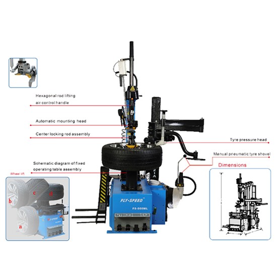 1. Reversible mounting head (replaces crowbar): protects rims, speeds up mounting/dismounting (up to 26 inches, auxiliary arm boosts efficiency for low-profile/run-proof tyres). 2. Pneumatic handle + lifting system: user-friendly, changes traditional operation. 3. Pneumatic lifting + fixed table: saves effort, enables convenient operation (no center positioning locking device).